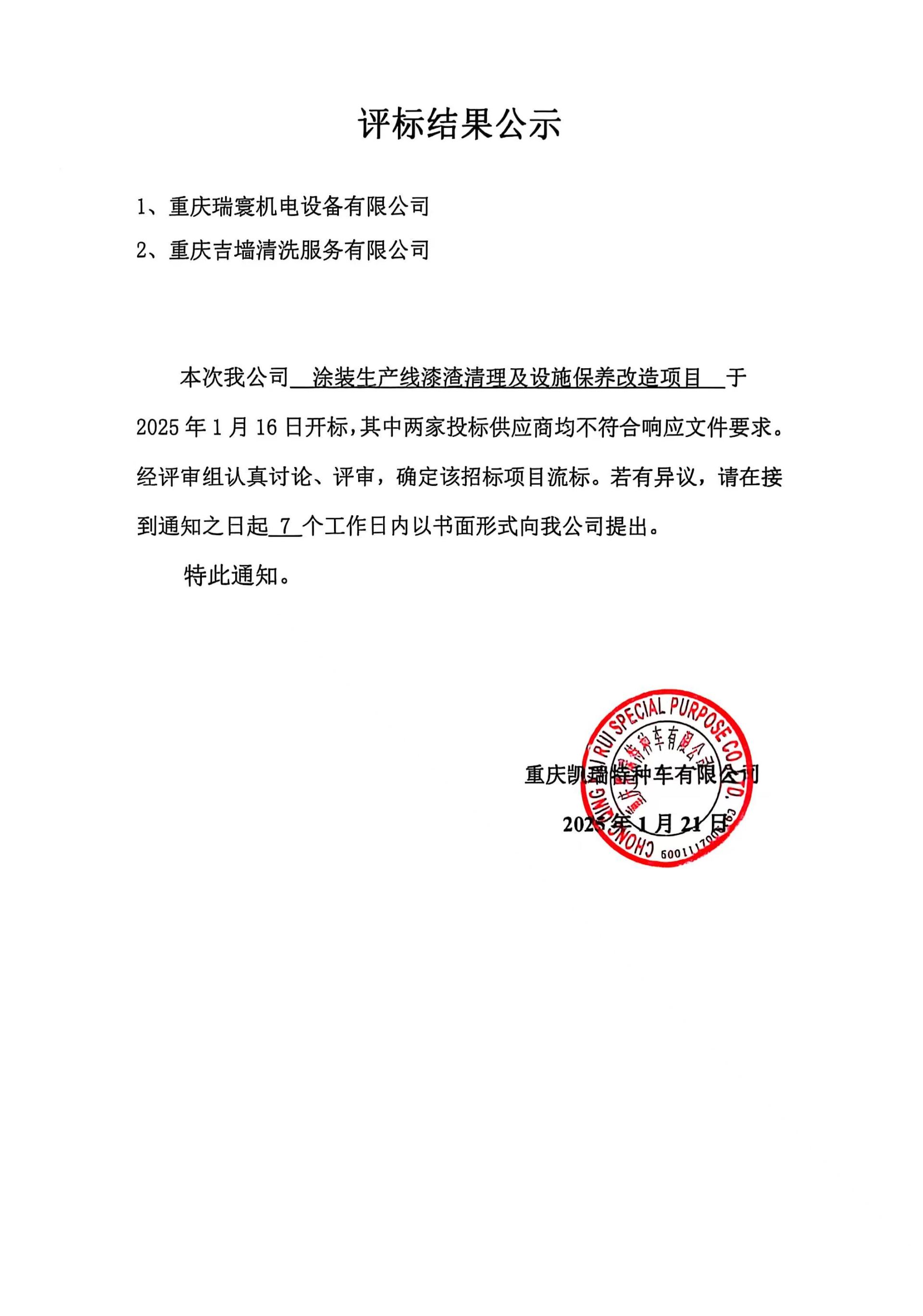 涂装生产线漆渣清理及设施保养改造项目评标结果公示