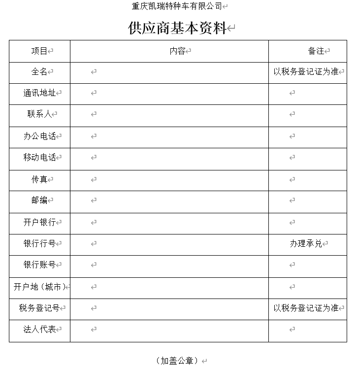 3. 供应商基本资料(按附件格式填写);