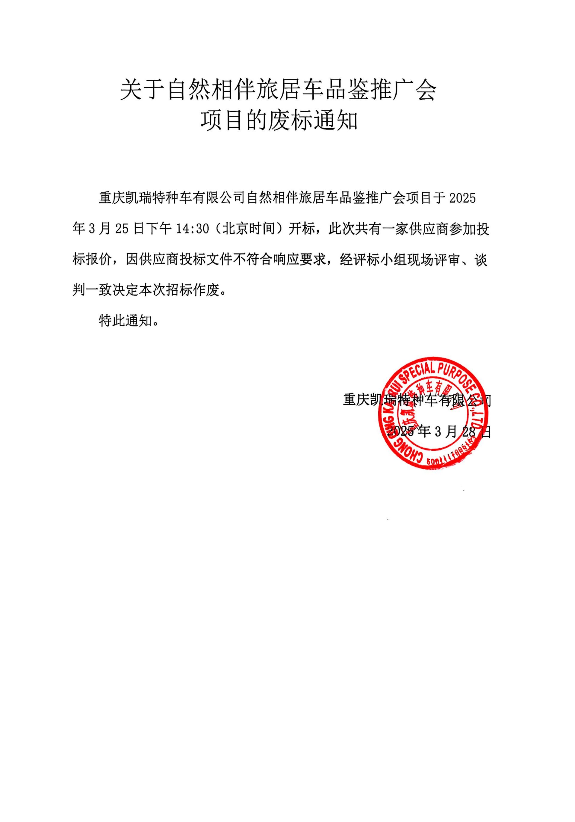 关于自然相伴旅居车品鉴推广会 项目的废标通知
